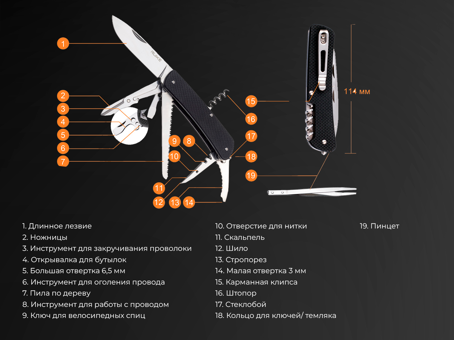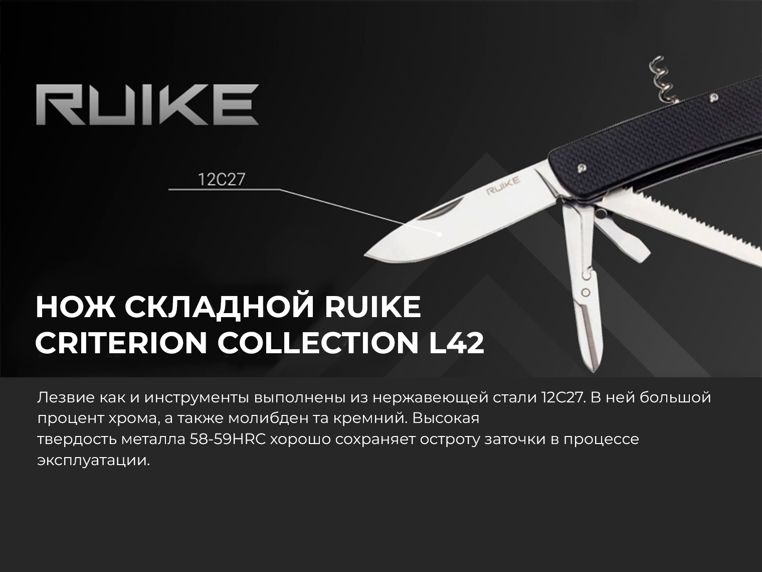 В случае с Ruike L42 вам не потребуется долго искать нужный инструмент, ведь всё самое необходимое у данной модели есть «на борту». К тому же, носить с собой такой нож намного проще и легче нежели весь перечень полноразмерных инструментов.