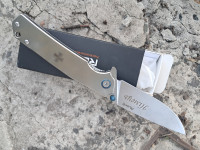 5.00Превосходный китаец, шикарный дизайн, отменная сталь. Все это можно сказать об 801,порадовала клипса которая садит на карман нож полностью. стильный дизайн , но есть свой минус ,зимой замерзает рука от металлической рукояти. Frame lock радует тем ,что можно зарывать одной рукой, благодаря подшипникам великолепно флиппует. Планирую приобрести себе подобный 108, так как на этом не хватает дополнительного замка на Frame lock.